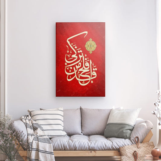 Elegant Islamic Calligraphy Canvas - 'Qad Aflaha Man Tazakka' Surah Al-A'la (87:14) Art Print for Spiritual Home Decor