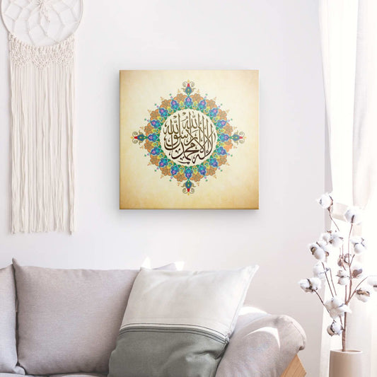 FnSq - Kalima Shahada Canvas Art - Declaration of Islamic Faith in Elegant Calligraphy